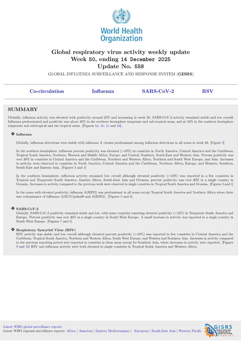 【World Health Organization】【2025】Global respiratory virus activity weekly update-5页