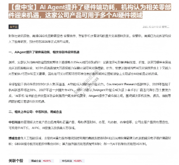 【财联社】【202512】AI Agent提升了硬件端功耗,机构认为相关零部件迎来机遇,这家公司产品可用于多个AI硬件领域-2页