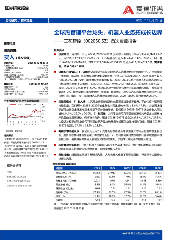 【爱建证券】【202512】全球热管理平台龙头,机器人业务拓成长边界——三花智控(002050.SZ)首次覆盖报告-6页