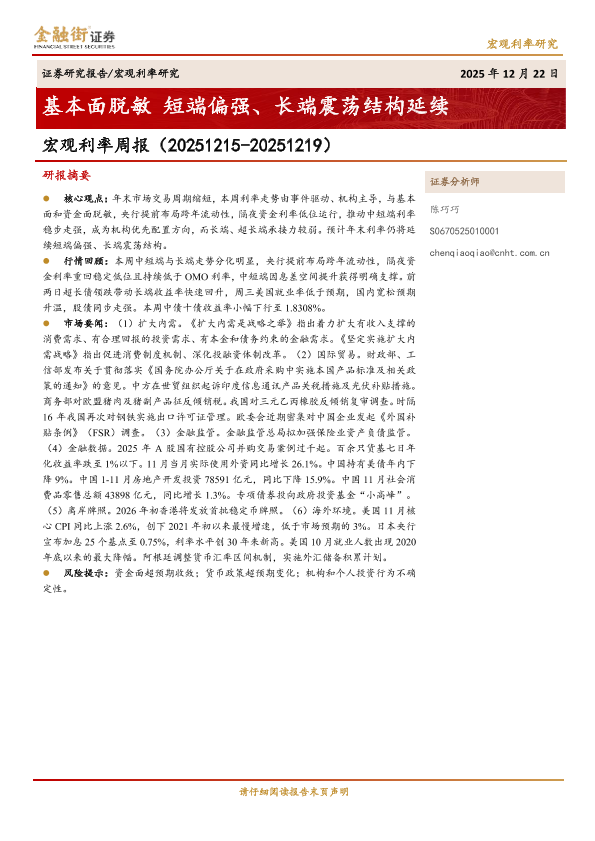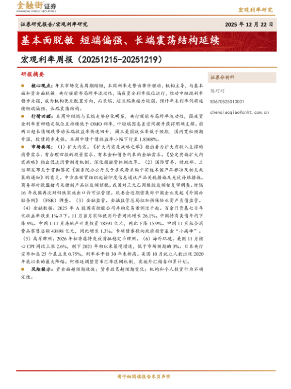【金融街证券】【202512】基本面脱敏短端偏强、长端震荡结构延续-13页