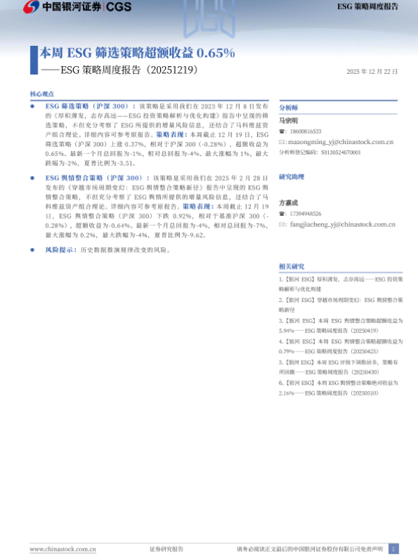 【银河证券】【202512】本周 ESG筛选策略超额收益 0.65%-8页