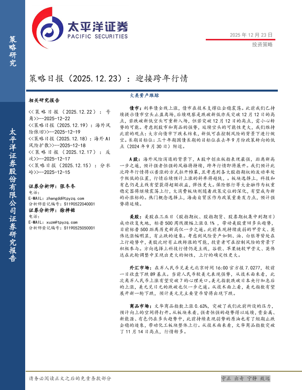 跨年行情 美元指数 科技板块 有色板块 债券市场