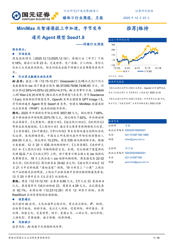 【国元证券】【202512】MiniMax及智谱港股上市加速,字节发布通用 Agent模型 Seed1.8-15页