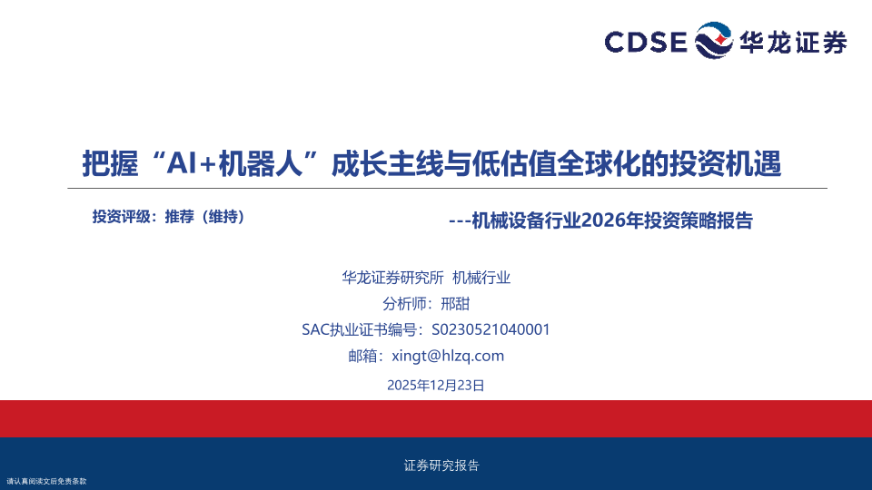 【华龙证券】【202512】机械设备行业2026年投资策略报告-48页
