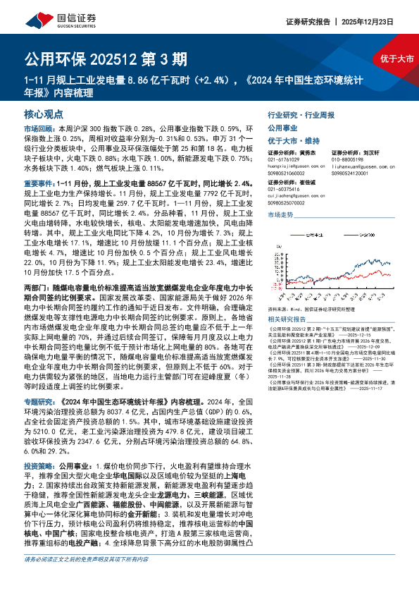 【国信证券】【202512】2025年12月22日 公用环保202512第3期:1-11月规上工业发电量8.86亿千瓦时(+2.4%),《2024年中国生态环境统计年报》内容梳理-36页