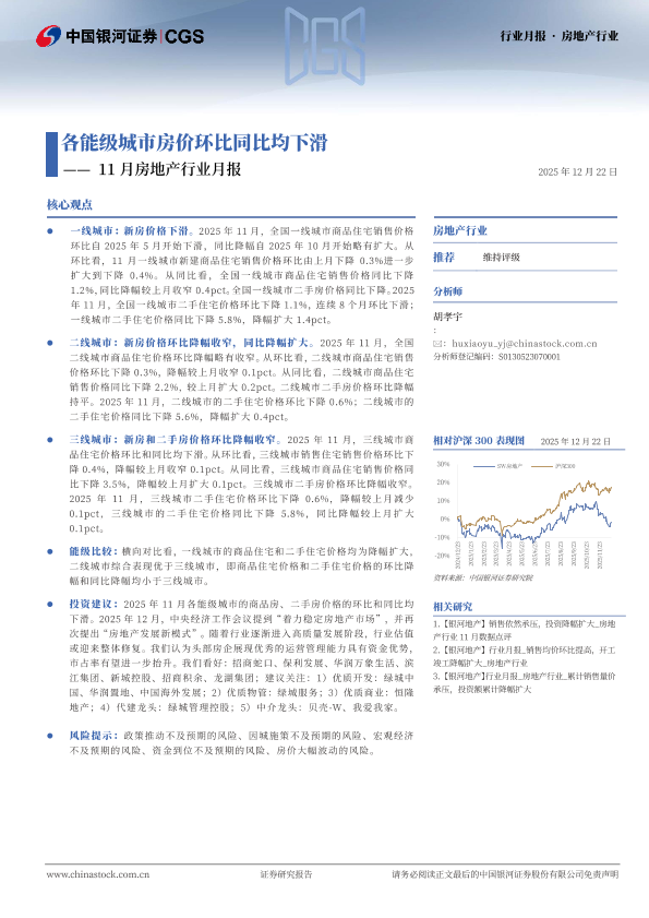【银河证券】【202511】11月房地产行业月报:各能级城市房价环比同比均下滑-12页