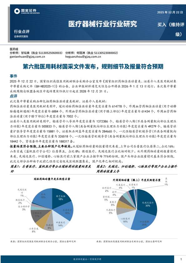 【国金证券】【202512】医疗器械行业行业研究:第六批医用耗材国采文件发布,规则细节及报量符合预期-5页