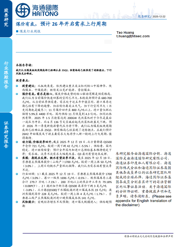 【海通国际】【202512】煤价有底,预计26年开启需求上行周期-23页