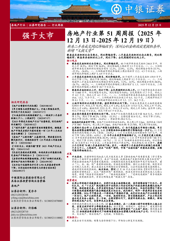 【中银证券】【202512】房地产行业第51周周报(2025年12月13日-2025年12月19日)-24页