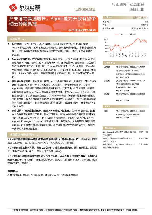【东方证券】【202512】传媒行业动态跟踪 ——产业落地高速增长,Agent能力开放有望带动云持续高增-3页