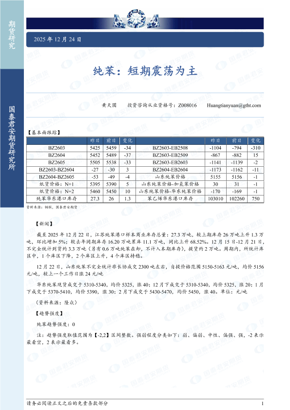 【国泰君安期货】【202512】纯苯:短期震荡为主-2页