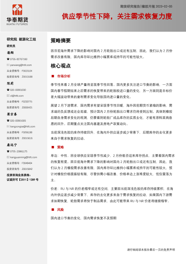 【华泰期货】【20230205】橡胶月报:供应季节性下降,关注需求恢复力度-17页