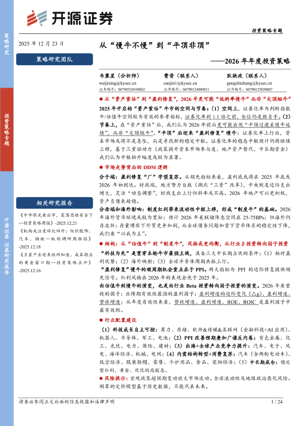 【开源证券】【202512】从“慢牛不慢”到“平顶非顶”——2026年年度投资策略-24页