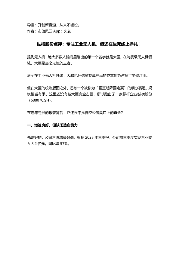 【市值风云 App】【202512】纵横股份点评:专注工业无人机,但还在生死线上挣扎!-10页
