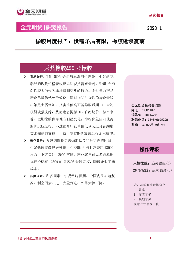 【金元期货】【20230131】橡胶月度报告:供需矛盾有限,橡胶延续震荡-15页