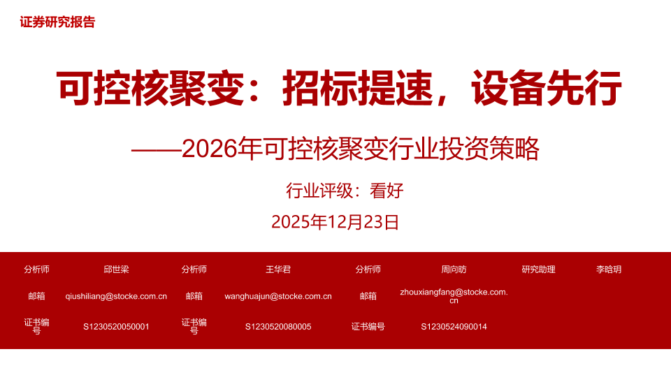【浙商证券】【202512】2026年可控核聚变行业投资策略:招标提速,设备先行-40页