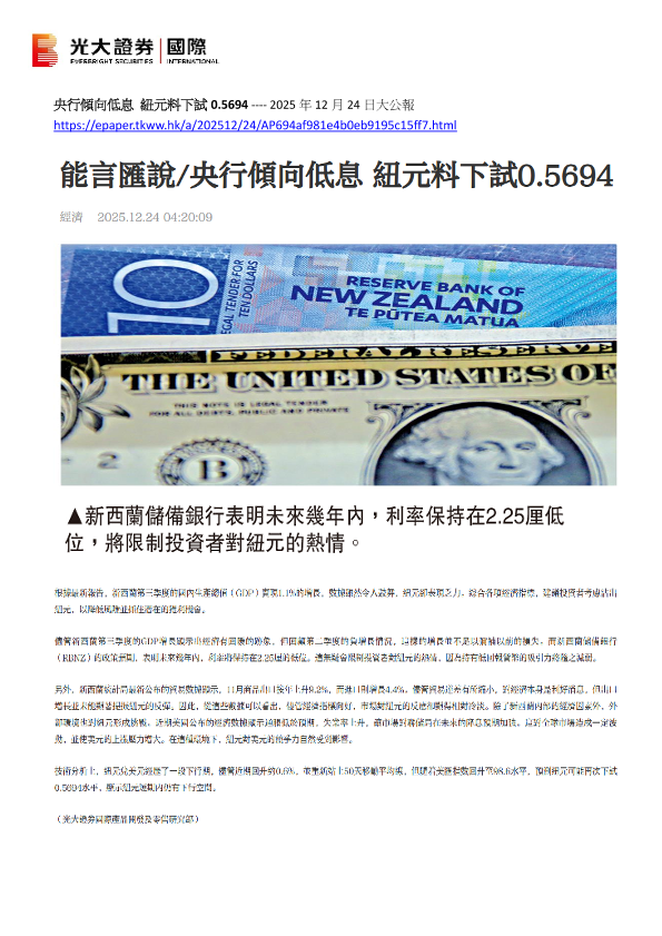 【光大证券(国际)】【202512】央行倾向低息 纽元料下试0.5694-1页