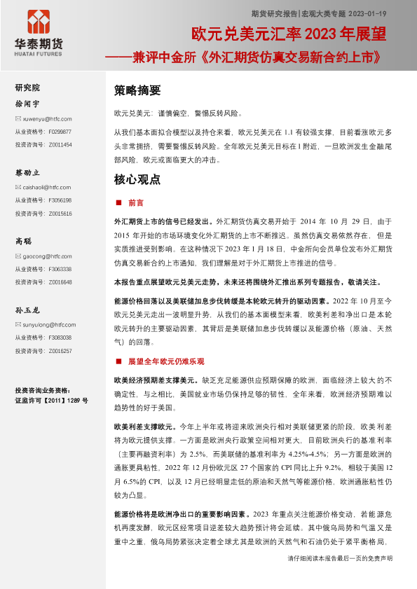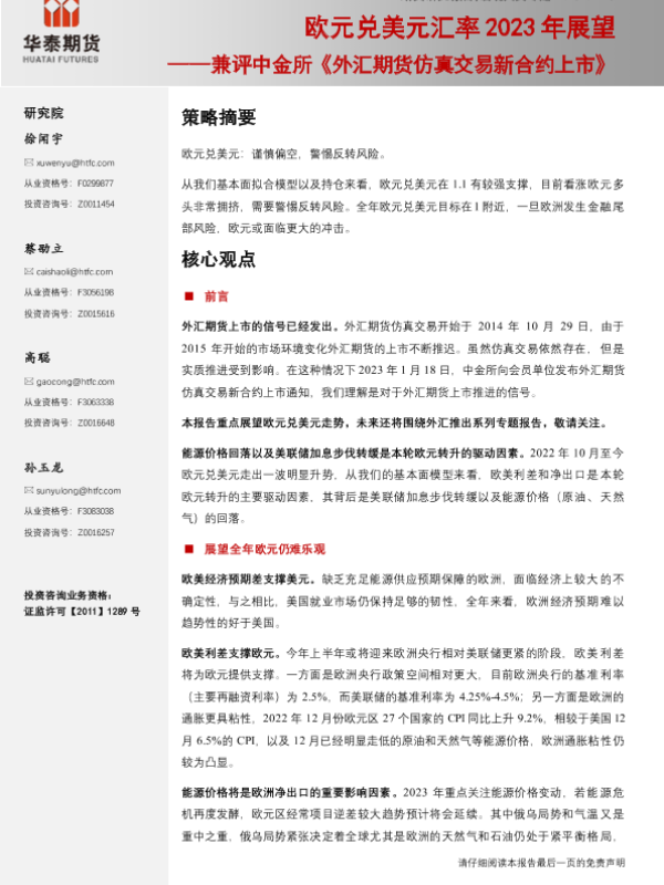 【华泰期货】【20230119】欧元兑美元汇率2023年展望:兼评中金所《外汇期货仿真交易新合约上市》-22页