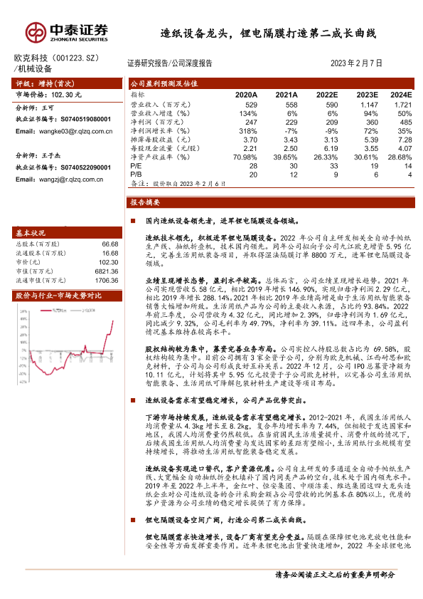 【中泰证券】【20230207】欧克科技(001223)造纸设备龙头,锂电隔膜打造第二成长曲线-31页