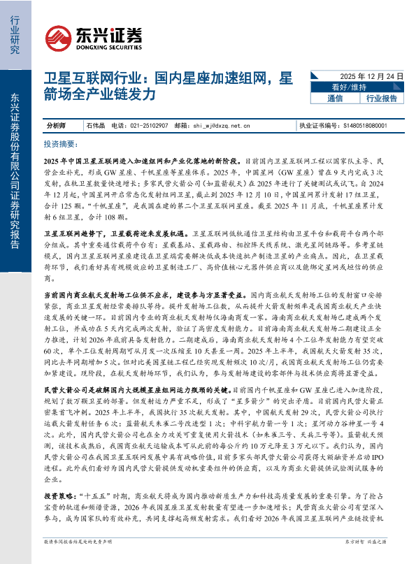 【东兴证券】【202512】卫星互联网行业:国内星座加速组网,星箭场全产业链发力-34页