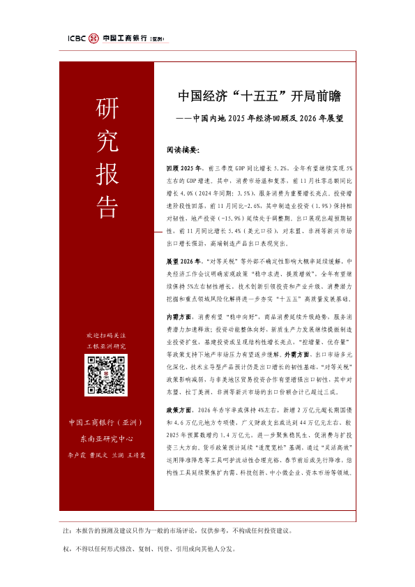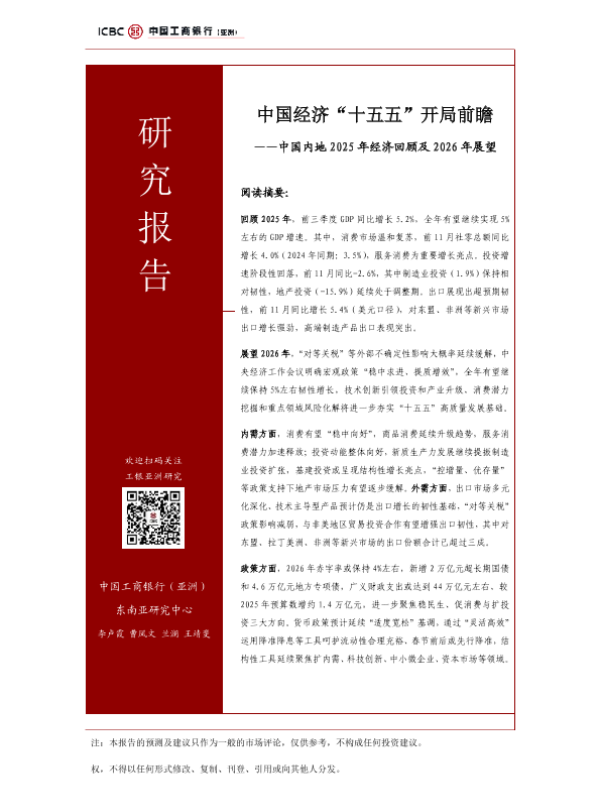 【中国工商银行(亚洲)东南亚研究中心】【2026】中国经济“十五五”开局前瞻——中国内地 2025年经济回顾及 2026年展望-23页