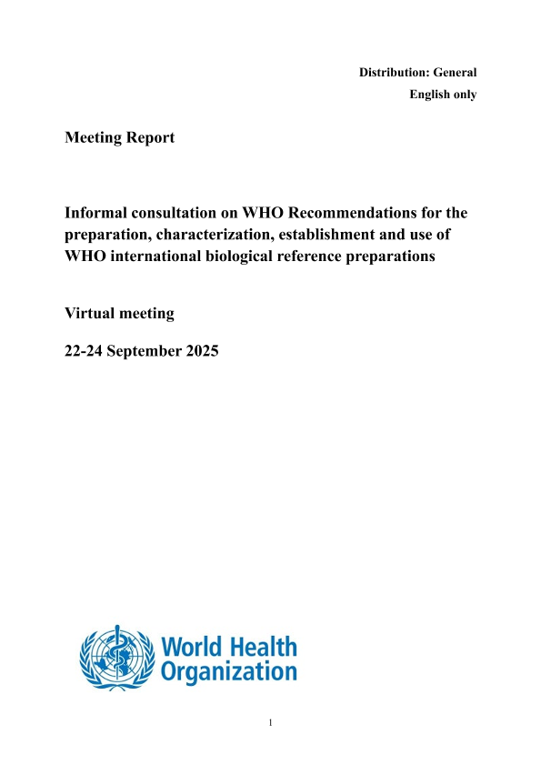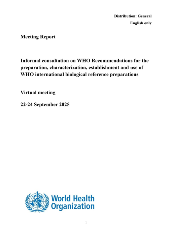 【World Health Organization】【202509】Informal consultation on WHO Recommendations for the preparation, characterization, establishment and use of WHO international biological reference preparations-13页