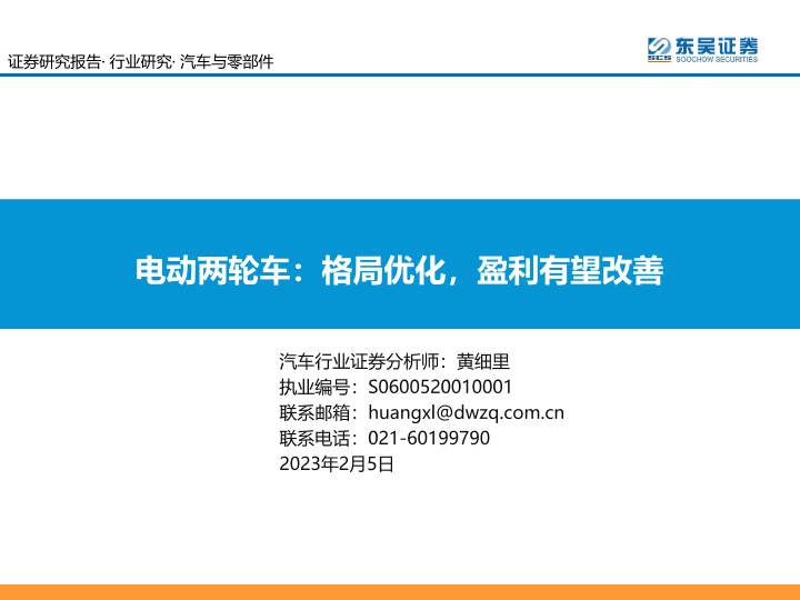 【东吴证券】【20230205】汽车与零部件行业电动两轮车:格局优化,盈利有望改善-28页