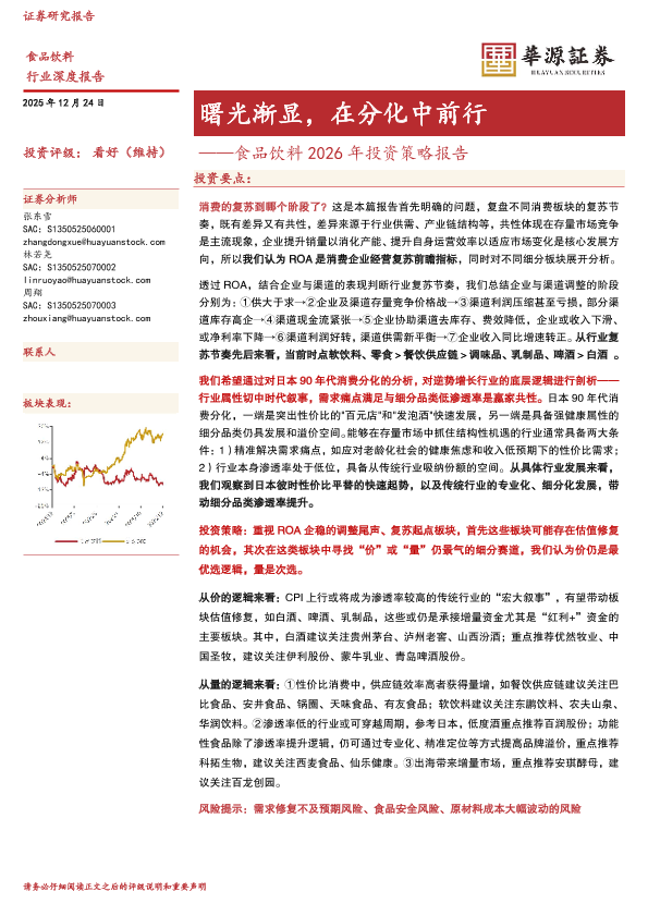 【华源证券】【202512】曙光渐显,在分化中前行——食品饮料 2026年投资策略报告-47页