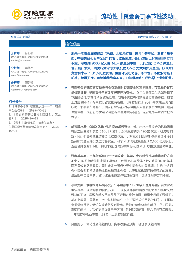 【财通证券】【202510】流动性|资金弱于季节性波动-24页
