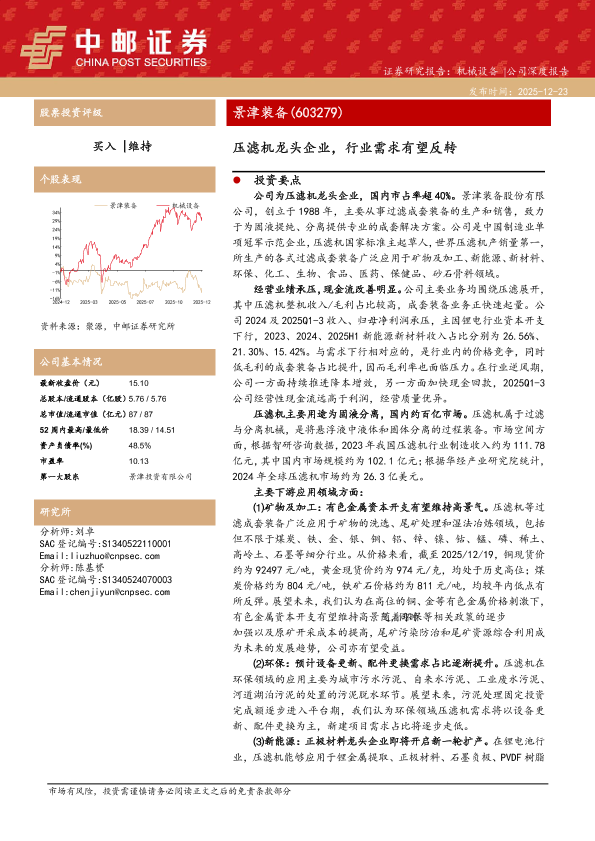 【中邮证券】【202512】机械设备|公司深度报告:景津装备-压滤机龙头企业_行业需求有望反转-29页