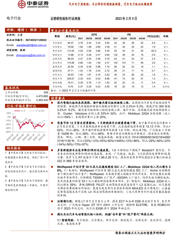 【中泰证券】【20230205】汽车电子周跟踪:车企降价促销提振销量,汽车电子板块延续涨势-15页