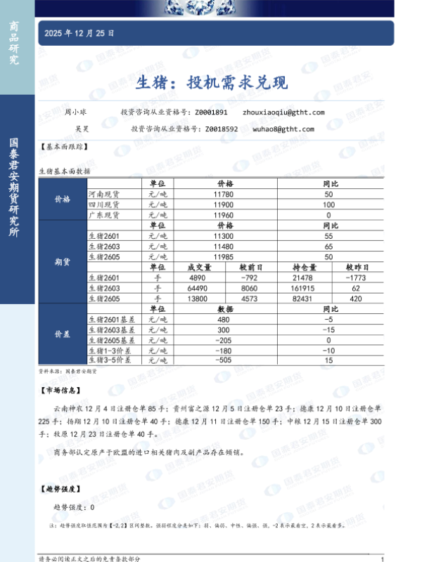 【国泰君安期货】【202512】生猪:投机需求兑现-2页