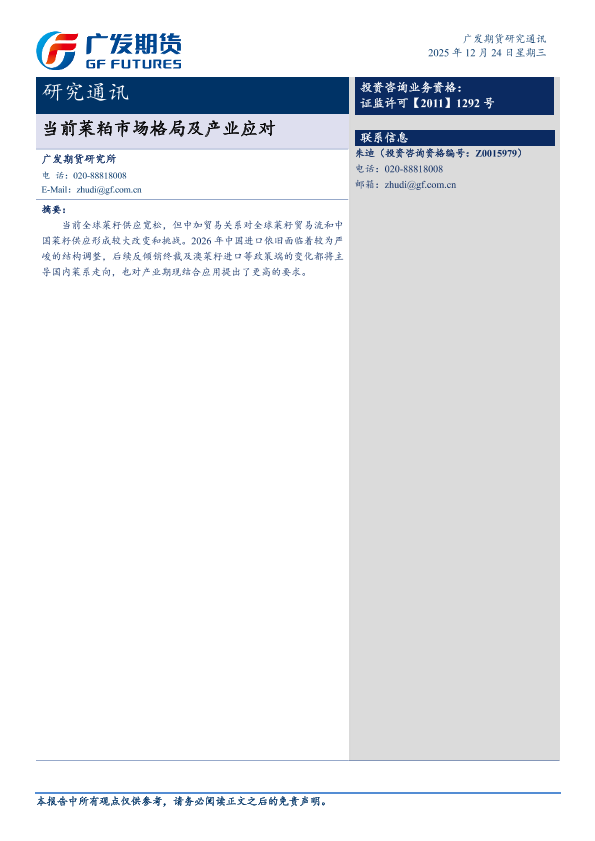 【广发期货研究所】【202512】当前菜粕市场格局及产业应对-8页