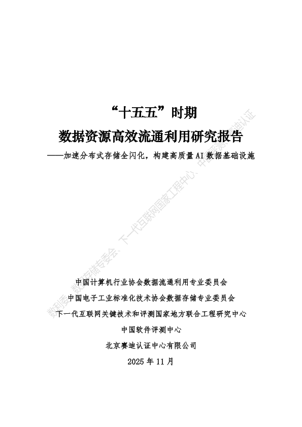 【中国计算机行业协会数据流通利用专业委员会&中国电子工业标准化技术协会数据存储专业委员会&下一代互联网关键技术和评测国家地方联合工程研究中心&中国软件评测中心&北京赛迪认证中心有限公司】【202511】“十五五”时期 数据资源高效流通利用研究报告——加速分布式存储全闪化,构建高质量 AI数据基础设施-49页