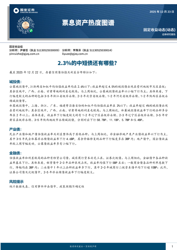 【国金证券】【202512】票息资产热度图谱_2.3_的中短债还有哪些-20页