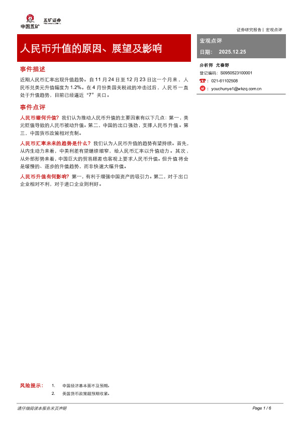 【五矿证券】【202512】人民币升值的原因、展望及影响-6页