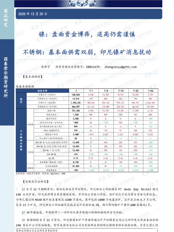【国泰君安期货】【202512】镍:盘面资金博弈,追高仍需谨慎 不锈钢:基本面供需双弱,印尼镍矿消息扰动-3页