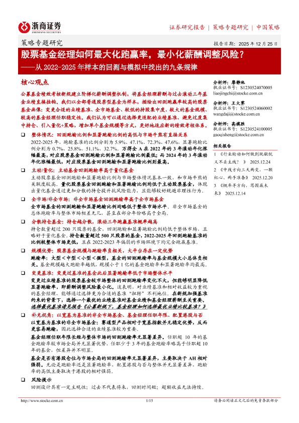 【浙商证券】【202512】股票基金经理如何最大化跑赢率,最小化薪酬调整风险?——从 2022-2025年样本的回测与模拟中找出的九条规律-15页