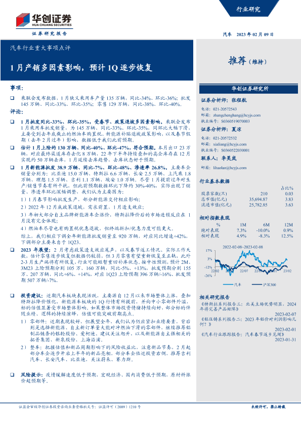 【华创证券】【20230209】汽车行业重大事项点评:1月产销多因素影响,预计1Q逐步恢复-16页
