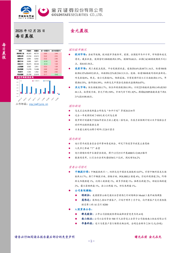 【金元证券股份有限公司】【202512】2025年 12月 25日每日晨报-6页