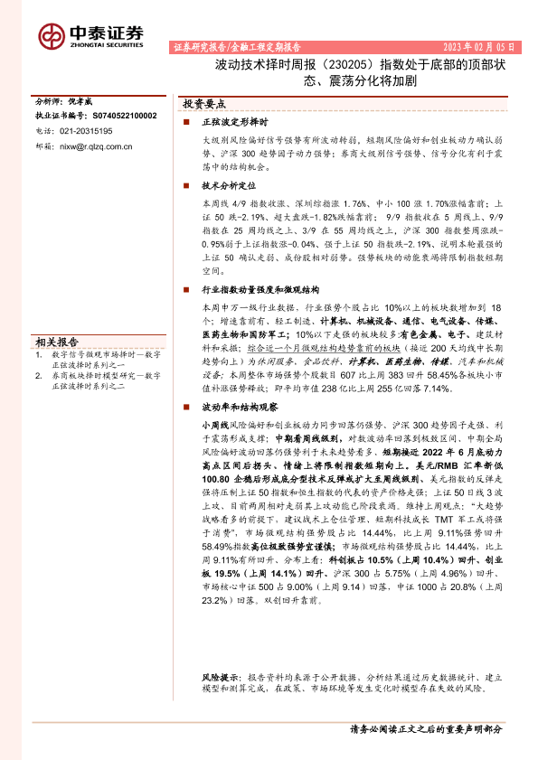 【中泰证券】【20230205】波动技术择时周报:指数处于底部的顶部状态、震荡分化将加剧-19页