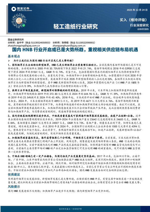 【国金证券】【2025】国内HNB行业开启或已是大势所趋,重视相关供应链布局机遇-24页