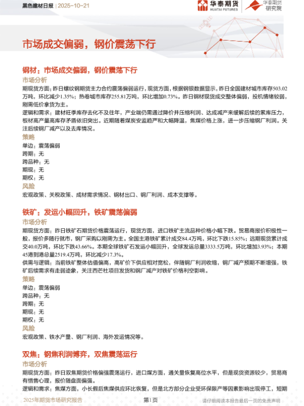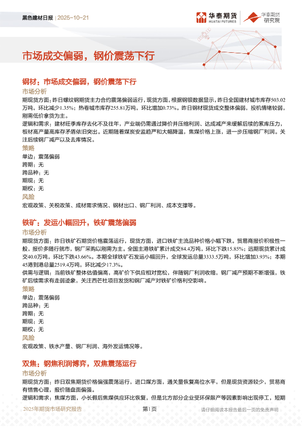 【华泰期货】【202510】黑色建材日报 | 市场成交偏弱,钢价震荡下行-13页