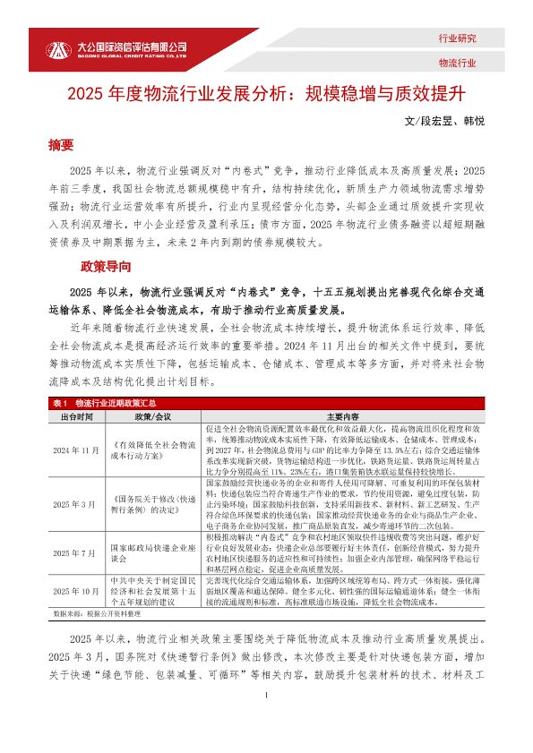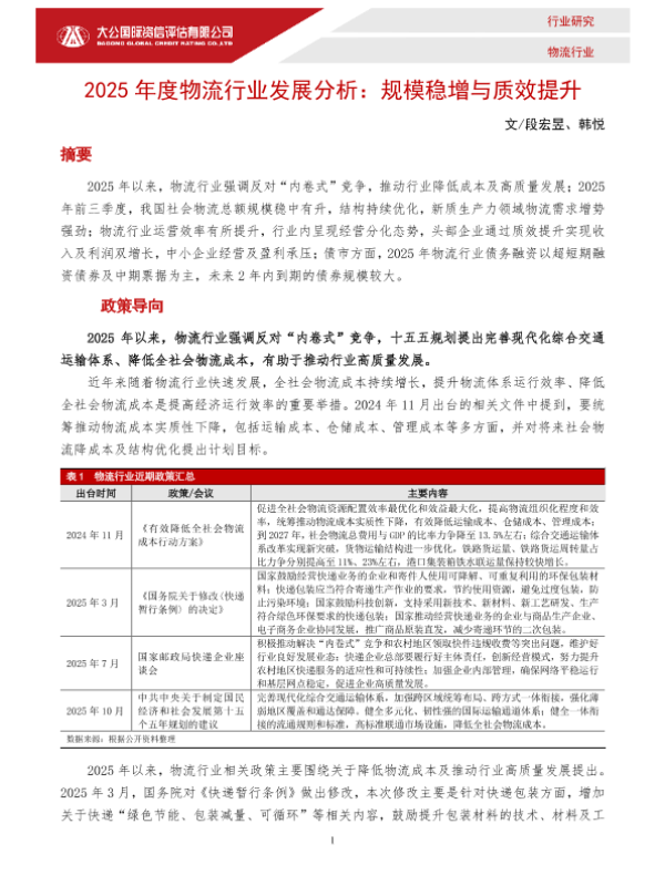 【大公国际】【2025】2025年度物流行业发展分析:规模稳增与质效提升-5页