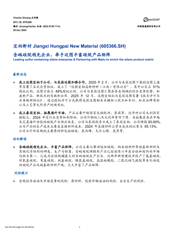 【环球富盛理财有限公司】【202512】含硫硅烷领先企业,牵手迈图丰富硅烷产品矩阵-3页