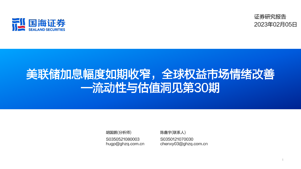 【国海证券】【20230205】流动性与估值洞见第30期:美联储加息幅度如期收窄,全球权益市场情绪改善-53页