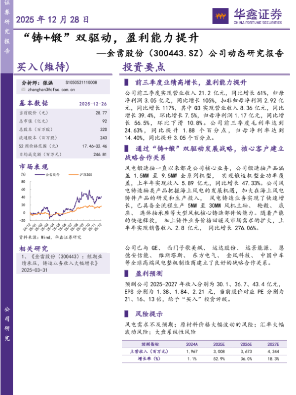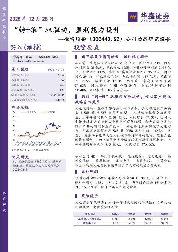 【华鑫证券】【202512】“铸+锻”双驱动,盈利能力提升—金雷股份(300443.SZ)公司动态研究报告-5页