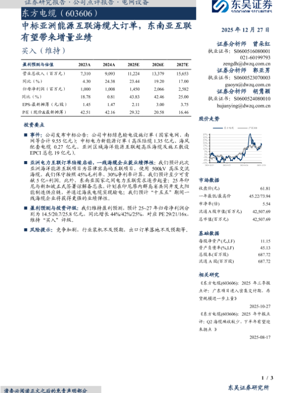 【东吴证券】【202512】中标亚洲能源互联海缆大订单,东南亚互联有望带来增量业绩-3页