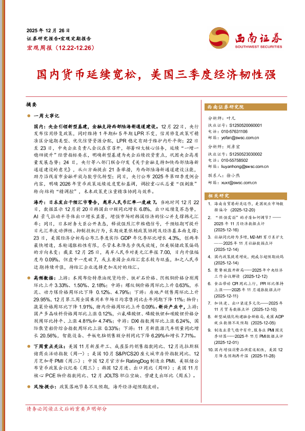 【西南证券】【202512】国内货币延续宽松,美国三季度经济韧性强-15页