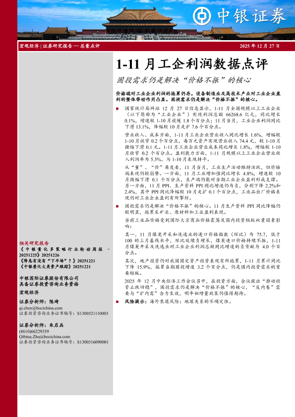 【中银证券】【202512】1-11月工企利润数据点评:固投需求仍是解决“价格不振”的核心-7页